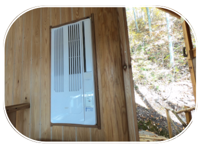 ここは森の中ですので真夏でも涼しく、エアコンを使う事は殆どありませんが、一応装備してあります。